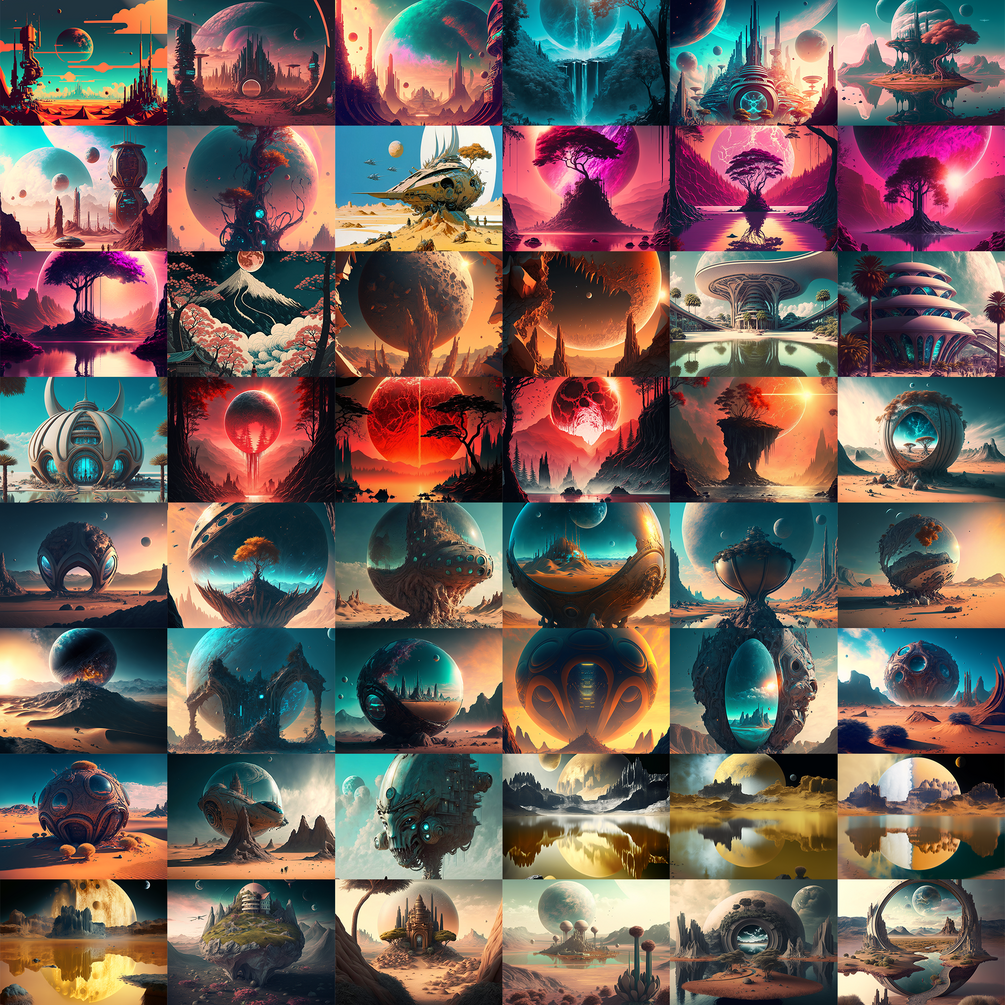 This set was rendered with the use of AI, which provides a very unique and realistic look. Great way to add alien planet backdrops to your compositing works or conceptual art. All images were upscaled and post-processed for the best use in your compositing work or as art.